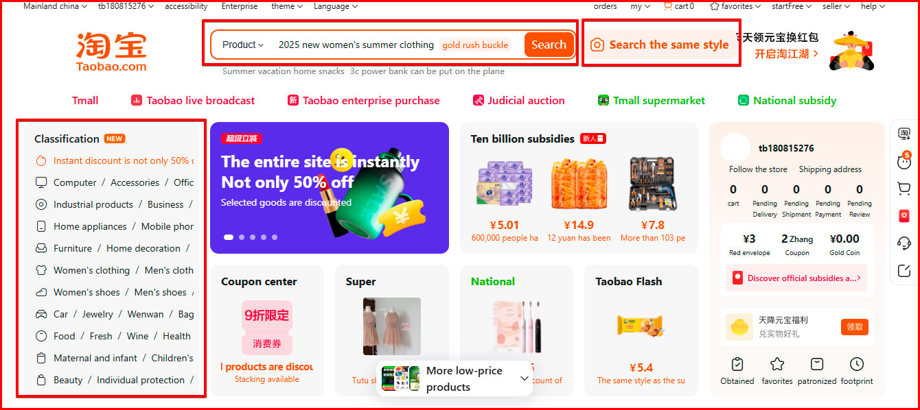 1. Translate the product name into Chinese using a translator and insert the characters into the search bar on Taobao.