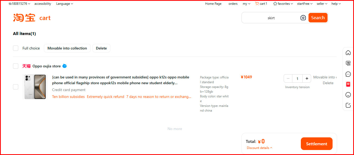 2. Go to the cart, select the product you want to buy and click the orange button "Settlement".