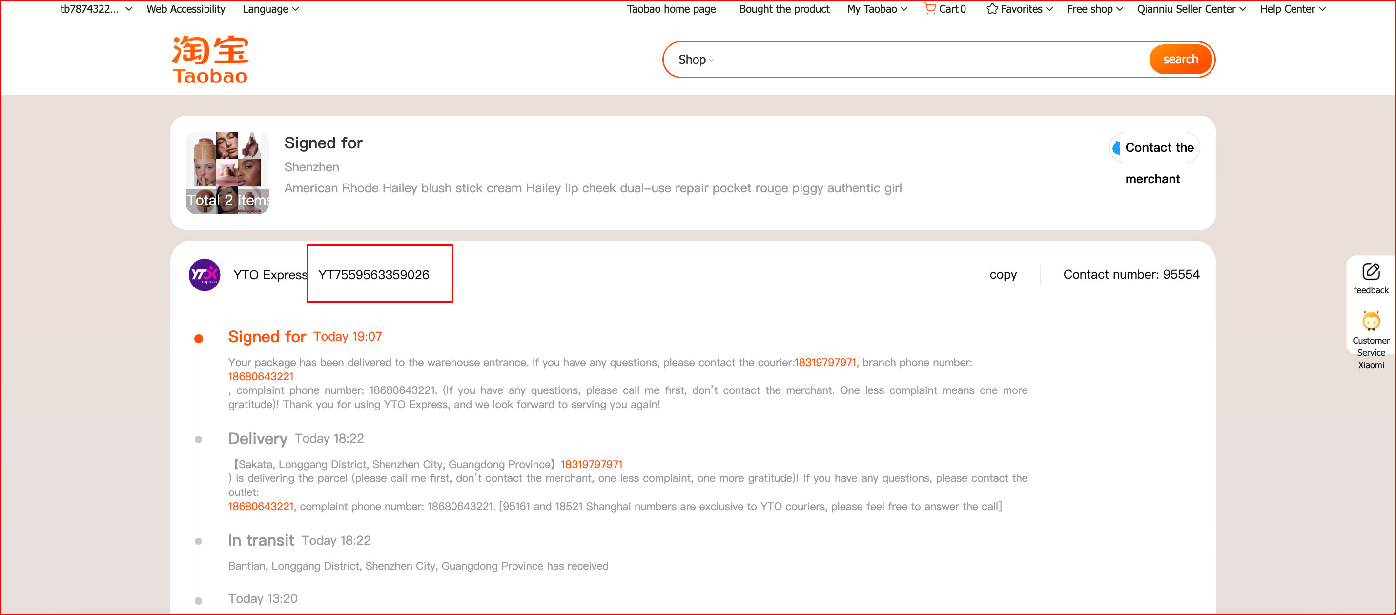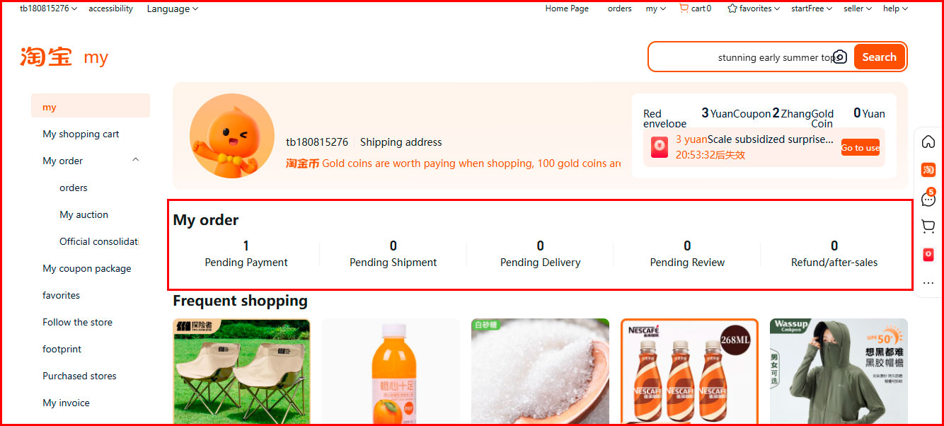 1. Log in to your Taobao account and select the order you want to track.