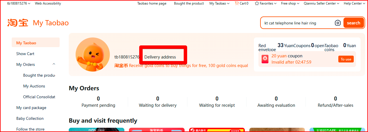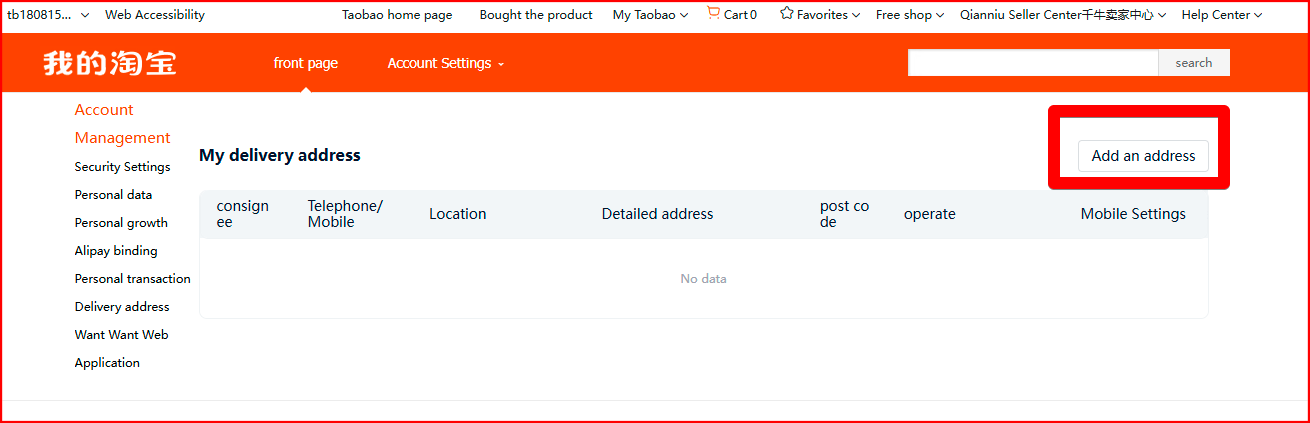 To enter your delivery address, go to your “Account” in the upper left corner of the main page, and open the “Account settings” section.