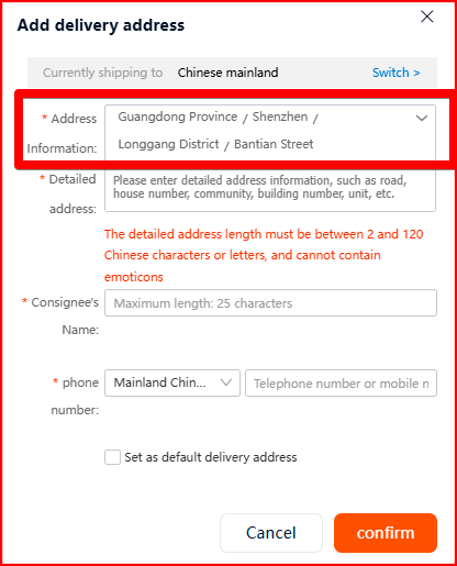 On the next page, fill in your delivery address by copying it from your Easyxpress account.