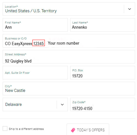 And this is how EasyXpress clients fill it out. Do not forget that the apartment number must be yours, taken from the profile on the site.
