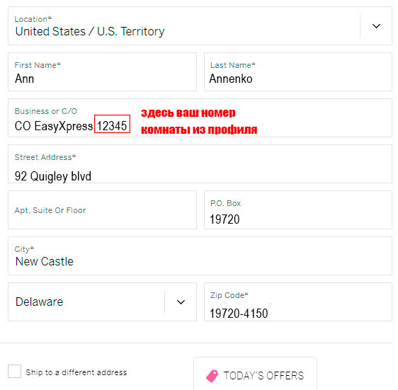 И так вот ее заполняют клиенты EasyXpress. Не забудьте, что номер комнаты должен быть ваш - из профиля на сайте.