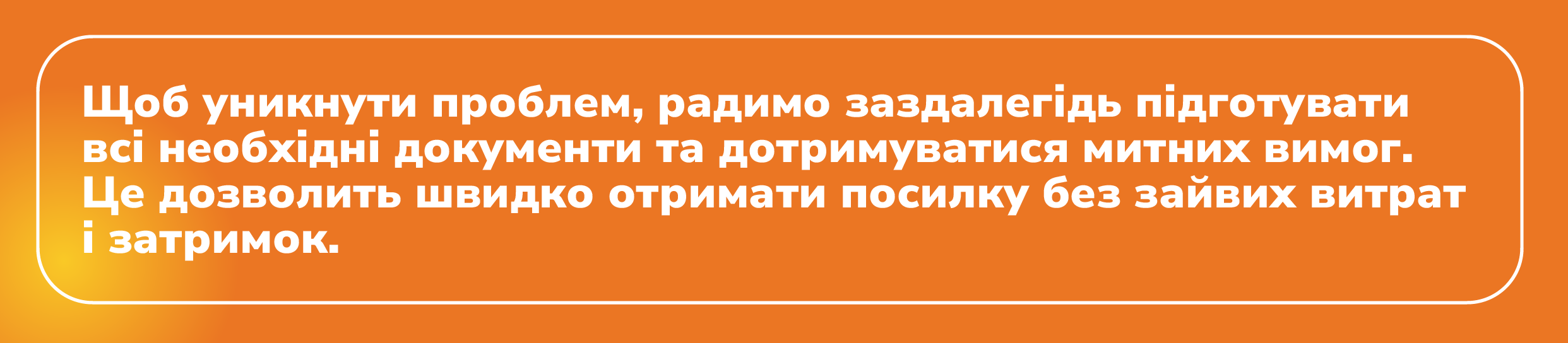 Митне оформлення – це процедура перевірки та контролю поштових відправлень, які перетинають митний кордон України. Вона включає оцінку вмісту посилки, визначення митних платежів (якщо вони передбачені) та перевірку відповідності товару митним правилам.